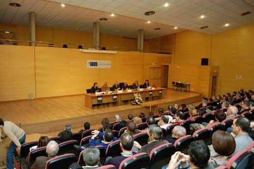 O salón de actos da Facultade encheuse con compañeiros e amigos que quixeron acompañar ao catedrático nesta homenaxe