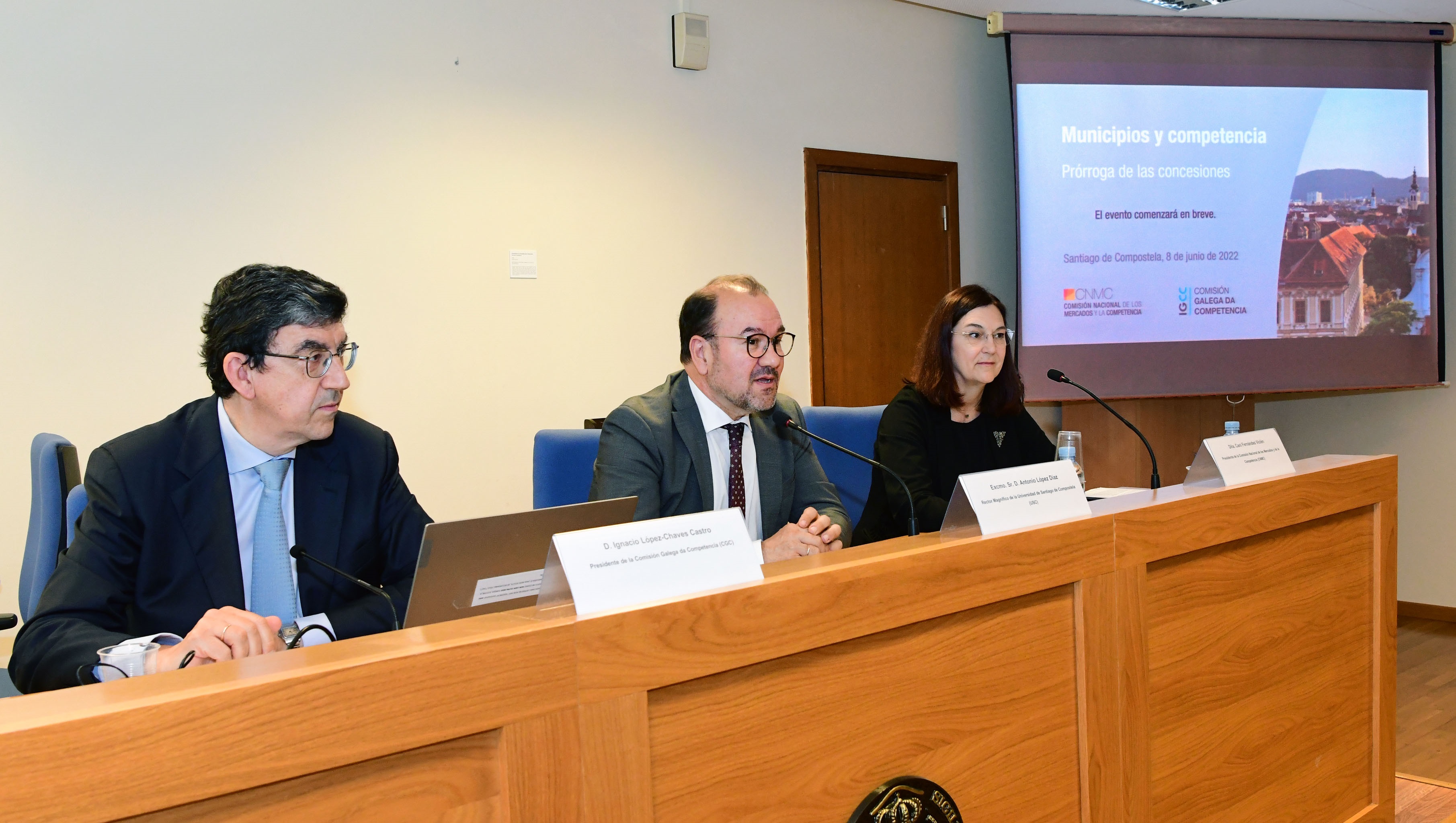 A xornada ‘Municipios e Competencia’ botou a andar este mércores 8 na Facultade de Dereito da USC co obxectivo de debater sobre os retos das prórrogas de concesións para a competencia e a regulación. A sesión inaugural deste foro organizado pola Comisión Nacional dos Mercados e a Competencia (CNMC) e a Comisión Galega da Competencia (CGC), estivo presidida polo reitor Antonio López e contou coa presenza de Francisco Conde, vicepresidente primeiro e conselleiro de Economía, Industria e Innovación da Xunta de Galicia.