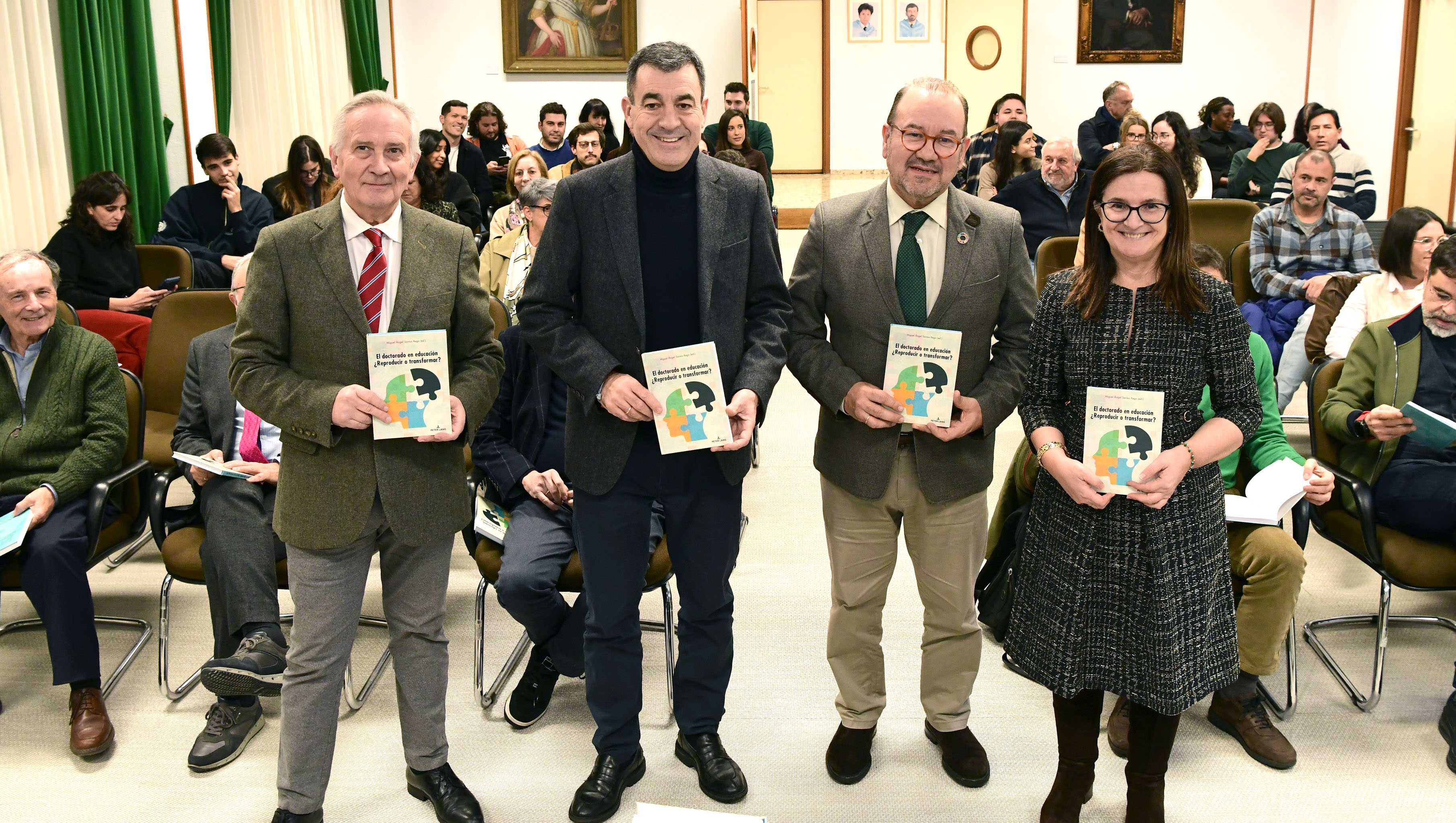 O catedrático Miguel Ángel Santos Rego presentou na Facultade de Ciencias da Educación o seu último libro El doctorado en Educación. ¿Reproducir o Transformar?. O acto presidiuno o reitor Antonio López Díaz e nel participaron tamén o conselleiro de Educación, Ciencia, Universidades e Formación Profesional, Román Rodríguez, e a decana da Facultade de Ciencias da Educación, Mar Lorenzo.