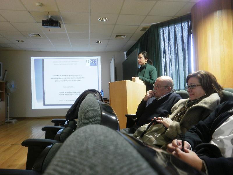 A investigadora luguesa Mª Azahara Soilán Cañás defendeu este mércores na Escola Politécnica Superior de Lugo a súa tese doutoral dirixida polo catedrático do Departamento de Enxeñaría Agroforestal e director da Plataforma da Madeira Estrutural, Manuel Guaita Fernández. O tribunal, que avaliou o traballo cun sobresaliente cum laude, destacou a súa utilidade práctica “para resolver un problema concreto" e aventurou "que se converterá nun referente no estudo das unións en estruturas da madeira”. A introdución de novas tecnoloxías como os centros de mecanizado mediante control numérico así como os programas informáticos específicos de deseño parametrizado de estruturas de madeira impulsan o rexurdimento das denominadas unións carpinteiras entre elementos de madeira. Concretamente, a unión en cola de milano redondeada é unha variante perfectamente adaptada aos novos procesos de execución e deseñada para resolver principalmente encontros entre vigas e viguetas de forxado. A falta de normativa específica para a comprobación destas unións impulsou o inicio da investigación, que presenta como resultado a xeración dun modelo de simulación numérica que permite comprobar estruturalmente o seu comportamento con distintas xeometrías. A xeración do modelo foi validada mediante a realización de ensaios experimentais entre os que destaca o desenvolvemento dun específico para a estimación do coeficiente de rozamento entre superficies, unha das propiedades máis influíntes no comportamento da unión.