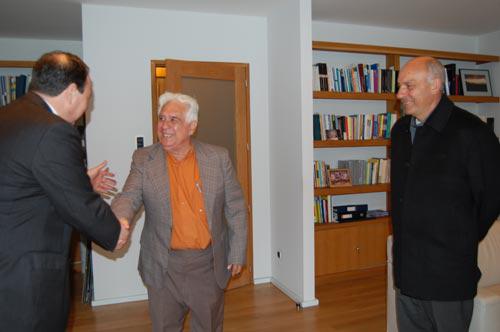 O vicerreitor Carlos Herrero saúda aos profesores cubanos Gustavo Febles (con traxe máis claro) e José Manuel Febles