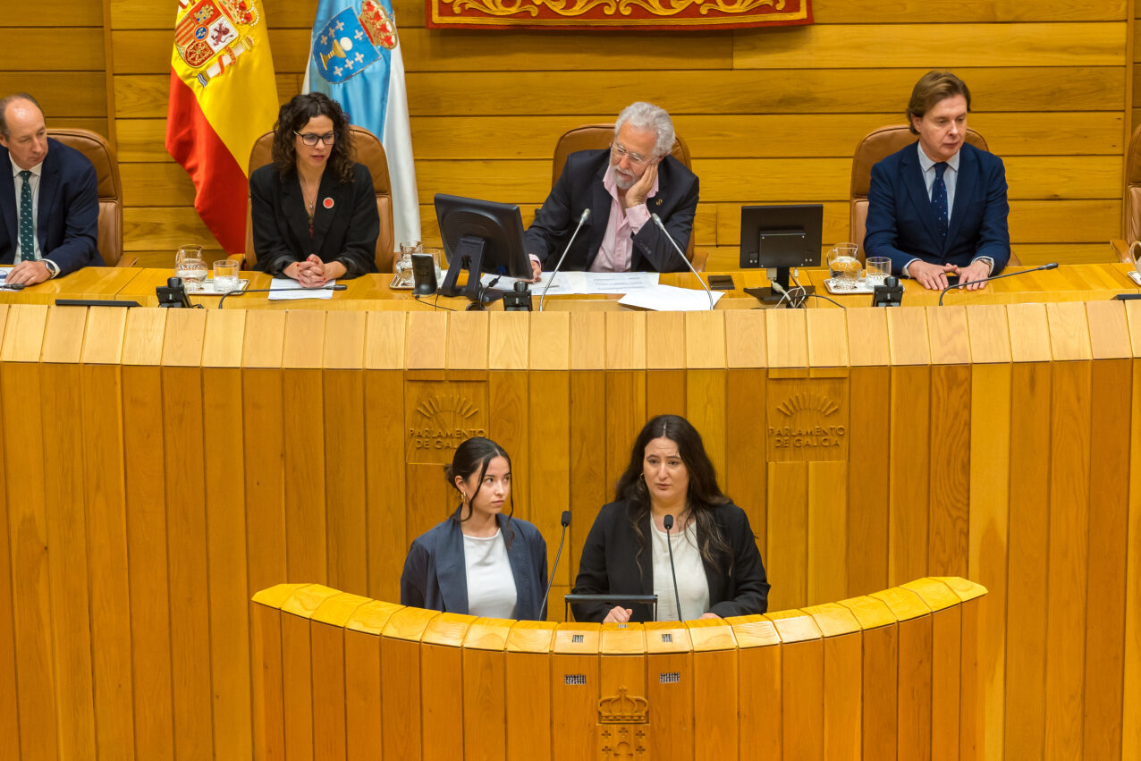 As estudantes do grao en Pedagoxía da USC Iria Márquez e Macarena Liste, en representación do alumnado da Facultade de Ciencias da Educación, reivindicaron no Parlamento de Galicia a participación e implicación do estudantado nos procesos formativos e o valor da educación para o desenvolvemento sostible e a cidadanía global como ferramenta de transformación social, para xerar sociedades máis fortes e democráticas e na defensa das e dos profesionais da educación. Nun acto que tivo lugar dentro da Campaña Mundial pola Educación (CME), as estudantes solicitaron de parlamentarias e parlamentarios a implicación na formulación das políticas públicas e un firme compromiso coa educación para a xeración dun futuro sostible para todas as persoas.