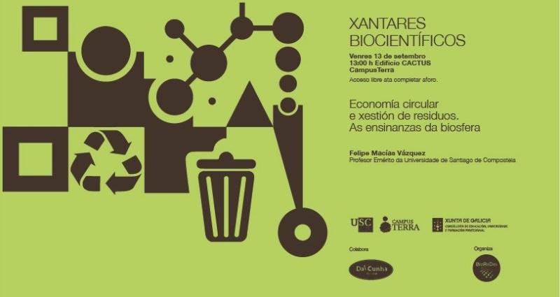 A economía circular e a xestión de residuos centrará este venres, a partir das 13.00 horas, no edificio Cactus do campus de Lugo, unha nova sesión dos ‘Xantares Biocientíficos’ promovidos pola Agrupación Estratéxica de Investigación do Campus Terra da USC, BioReDes.
