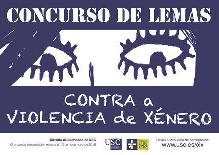 Un ano máis, e xa van cinco, a Oficina de Igualdade de Xénero da USC convoca o Concurso de Lemas contra a Violencia de Xénero, dirixido ao alumnado da USC matriculado neste curso. O prazo de presentación de propostas remata o 12 de novembro.