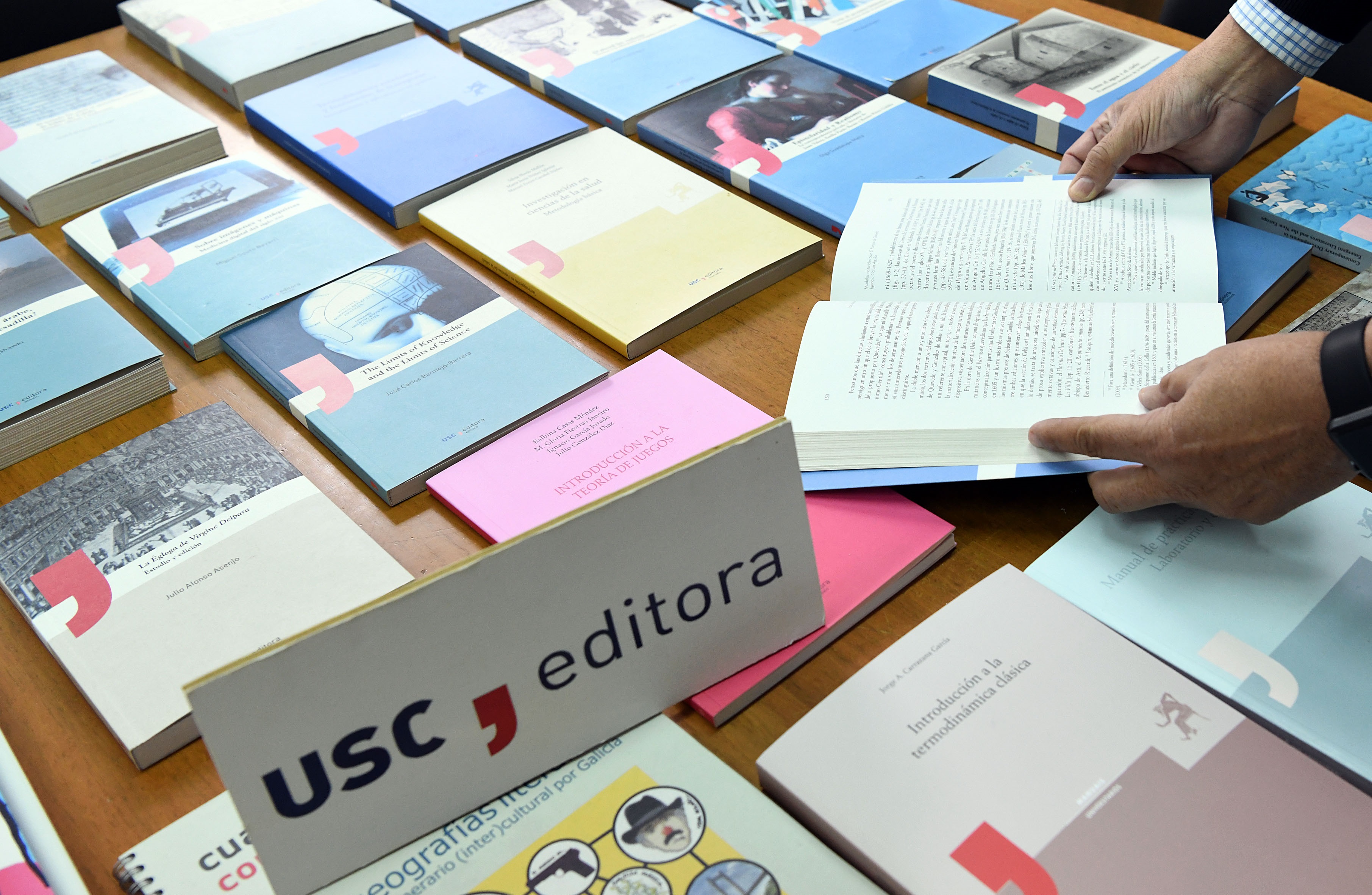 A Universidade, a través da súa editora, Edicións USC, achega corenta títulos editoriais de diversas coleccións  e temáticas, como mostra da importante contribución da Universidade ao sector local do libro. FOTO: Santi Alvite