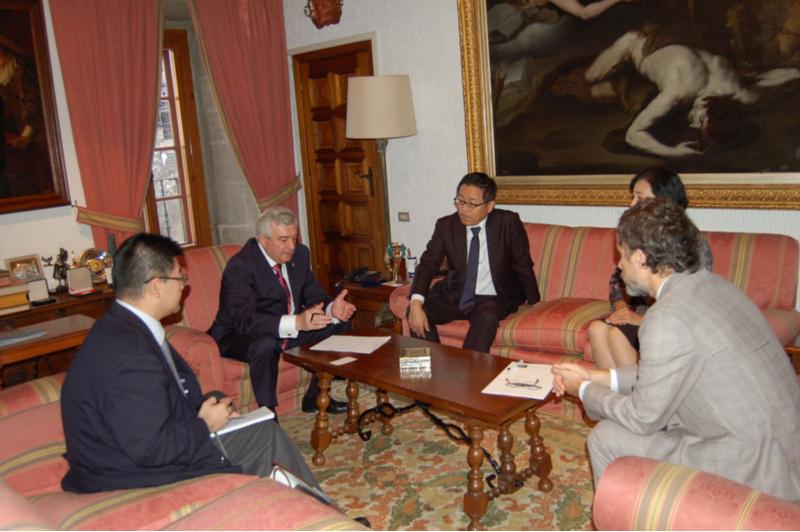 No centro da imaxe, Juan Viaño e Kazuhiko Koshikawa, nun instante da xuntanza