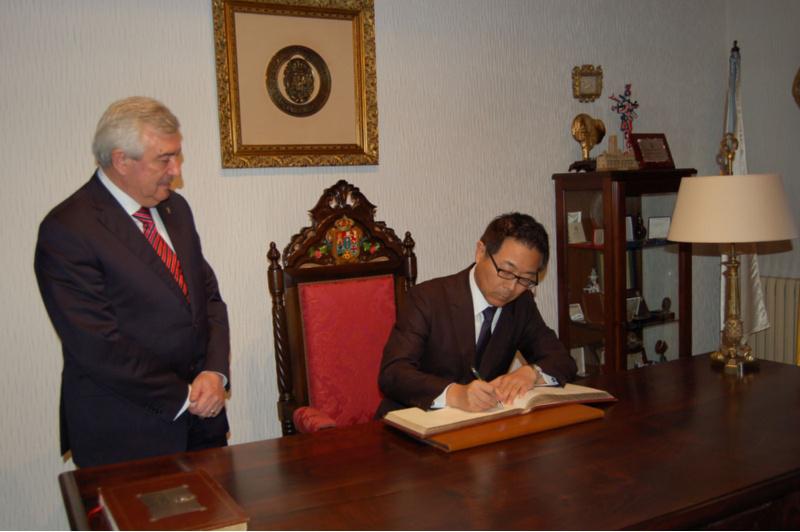 O embaixador de Xapón en España Kazuhiko Koshikawa reuniuse co reitor da USC Juan Viaño este xoves 23 na Reitoría compostelá. De carácter protocolario logo da incorporación en 2014 do representante nipón ao seu novo destino, a xuntanza serviu para comprobar o interese recíproco por fortalecer as relacións xa existentes dende hai anos entre a institución académica e Xapón, tanto a través do intercambio de persoal investigador e de estudantes, como por medio de proxectos culturais conxuntos arredor da peregrinaxe polo Camiño de Santiago e do xaponés de Kumano Kodo. Nos últimos anos, a USC desenvolveu diversas actividades na procura de dar contido á relación co país asiático así como para facer visible as particularidades daquela cultura, no contexto do intercambio de universitarios/as. Como mostra, este mesmo ano o Centro de Linguas Modernas desenvolveu un concurso de teatro en xaponés como reforzo ao proceso de aprendizaxe desa lingua, iniciativa que se suma a outras propostas anteriores que puxeron a atención na difusión da música e ás relativas á difusión da lingua e a cultura españolas, actividades formativas na que é habituail a presenza de alumnado orixinario de Xapón. Ademais, nos últimos anos deste decenio incrementouse o número de estudantes e investigadores que realizan estudos na Universidade compostelá, de xeito máis significativo nas facultades de Xeografía e Historia e Ciencias Económicas e Empresariais, aínda que tamén de Filosofía ou Ciencias da Comunicación, entre outros. O embaixador de Xapón asinou no Libro de Honra da USC