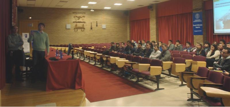 O Salón de Actos da Escola Politécnica Superior foi a sede na que se desenvolveu a segunda sesión do ciclo de conferencias sobre execución de obras portuarias, dirixidas aos alumnos do Grao en Enxeñería Civil deste centro do Campus de Lugo. Nesta sesión (así como na anterior na anterior, celebrada o martes 11), os alumnos e os profesores da titulación tiveron ocasión de aprender da experiencia profesional no ámbito da enxeñería portuaria da man de varios técnicos da Autoridade Portuaria de Ferrol-San Cibrao (APFSC): Alejandro Rey, xefe do Departamento de Investimentos e Planificación; Jesús Busto, xefe da División de Infraestruturas; e Jorge González, xefe da División de Planificación e Infraestruturas Telemáticas. Durante as conferencias, organizadas conxuntamente polo Grupo de Investigación en Enxeñería Civil e Enerxías Mariñas (GICEMA) coordinado polo profesor Alberte Castro Ponte e o Departamento de Enxeñaría Agroforestal dirixido polo profesor Ramón Velo Sabín, os técnicos da Autoridade Portuaria expuxeron a súa experiencia na execución de obras marítimas: dragados, diques, peiraos, pantaláns, así como obras de diversa índole (actuacións sobre patrimonio, faros, balizas etc.). Nas súas exposición, os responsables portuarios quixeron lembrar o apoio financeiro que, tanto dende a UE como desde o Ministerio de Industria, Enerxía e Turismo (Plan Reindus) recibiron nos últimos anos para o desenvolvemento dos seus plans de investimento e, máis especificamente, para a construción do Porto Exterior de Ferrol nas fases I e II, así como para as conexións exteriores e dotación de servizos para esta instalación, para o dragado da canle de entrada ao porto interior de Ferrol e para a mellora e transformación das instalacións do porto interior ferrolán para atender os tráficos de Short Sea Shipping.