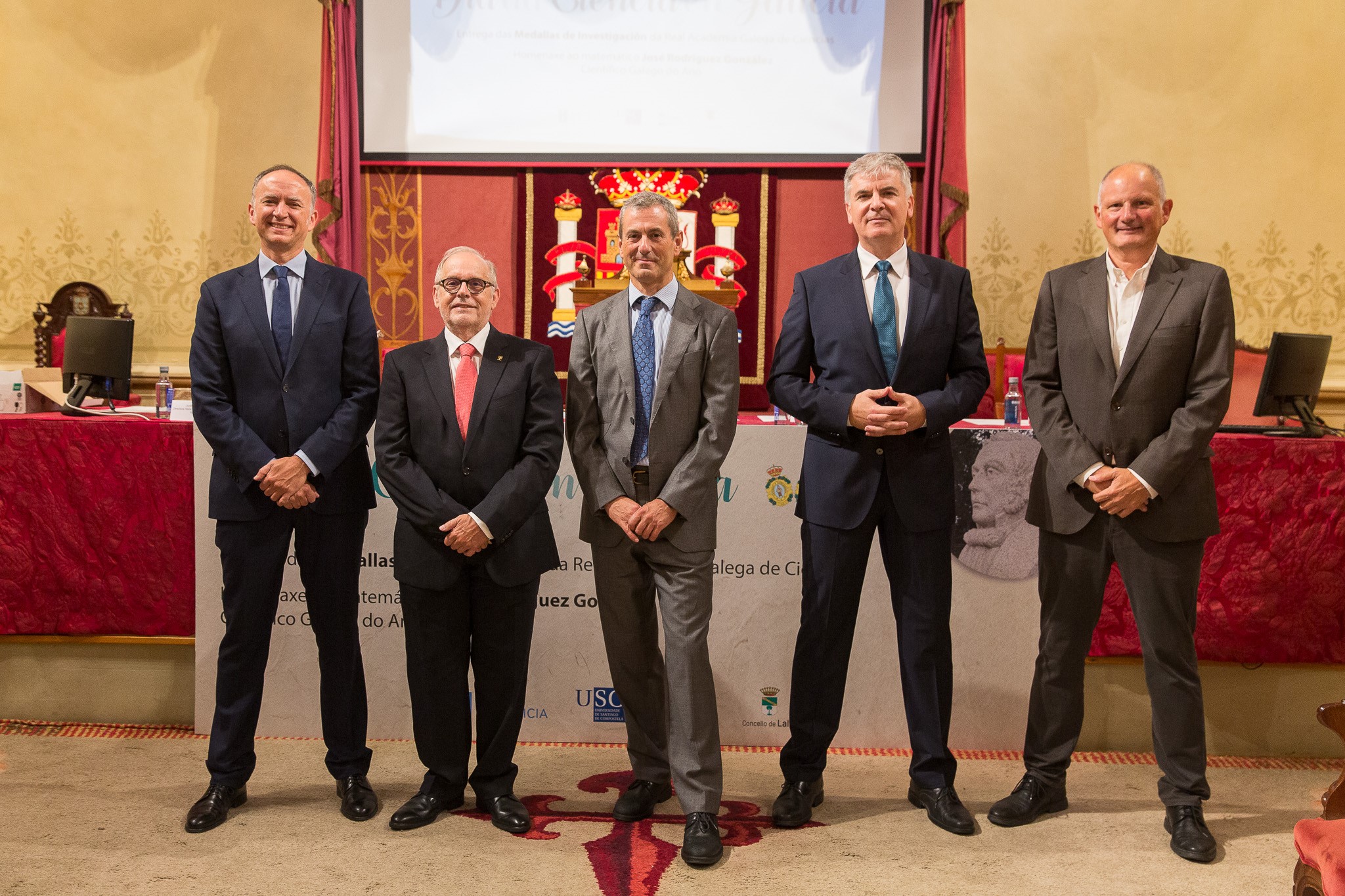 O Paraninfo da Universidade foi este martes o escenario da celebración do Día da Ciencia en Galicia, en homenaxe ao matemático José Rodríguez González, no que se entregaron as cinco Medallas de Investigación de Galicia que concede a Real Academia Galega de Ciencias.