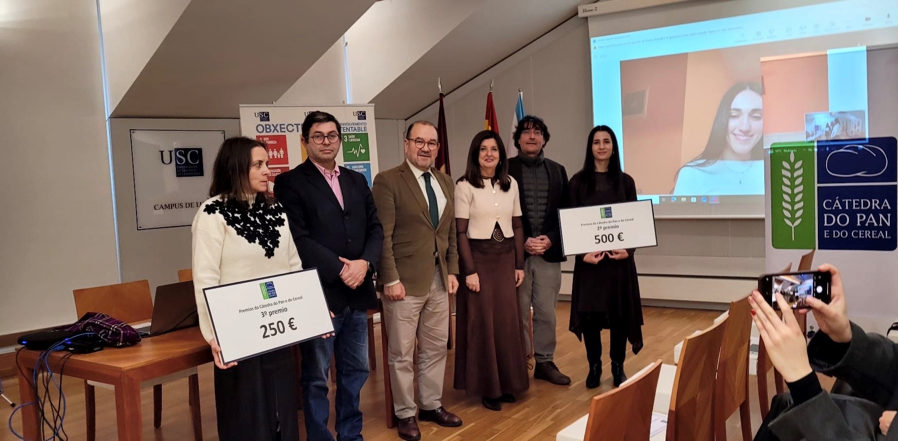 O segundo premio recaeu en María del Pilar España Fariñas polo Traballo Fin de Mestrado (TFM) Aplicación da espectroscopía de infravermello próximo (NIR) e medio (MIR) para a análise rápida e cuantitativa da composición nutricional da fariña de trigo. O terceiro galardón foi parar a María Belén García Gómez co TFG Ecotipo de trigo e tempo de almacenamento en conxelación: impacto en la calidad sensorial y aceptación del pan gallego. As distincións consistiron en 1.000 euros para o primeiro premio, 500 para o segundo e 250 para o terceiro, acompañados do correspondente diploma acreditativo.