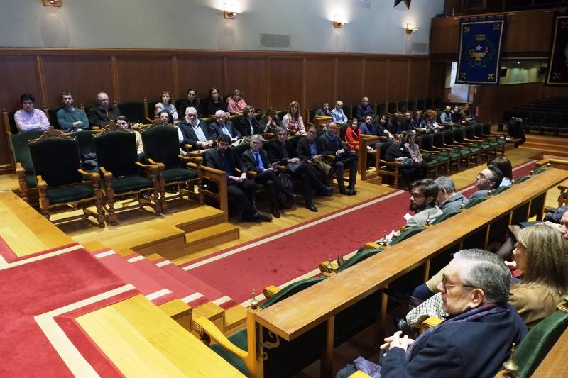 O acto presidiuno o reitor, xunto á que tamén participaron Corina Porro Martínez; José Montes Pérez, Alberto Meixide Vecino e Edelmiro López. Foto: Servimav-USC A entrega celebrouse no Salón Nobre de Colexio de Fonseca. Foto: Servimav-USC