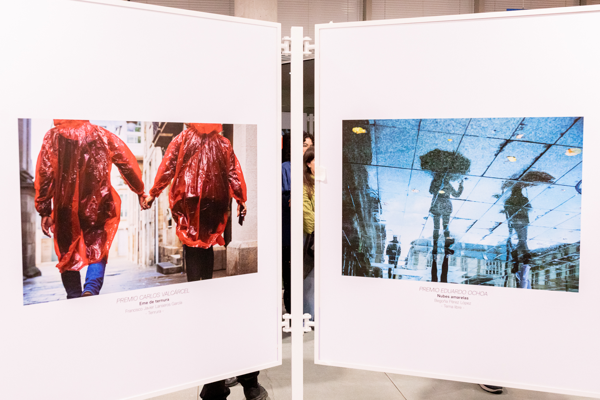 Paneis nos que se expoñen as fotografías gañadoras dos premios Carlos Valcárcel e Eduardo Ochoa FOTO: Marcos López