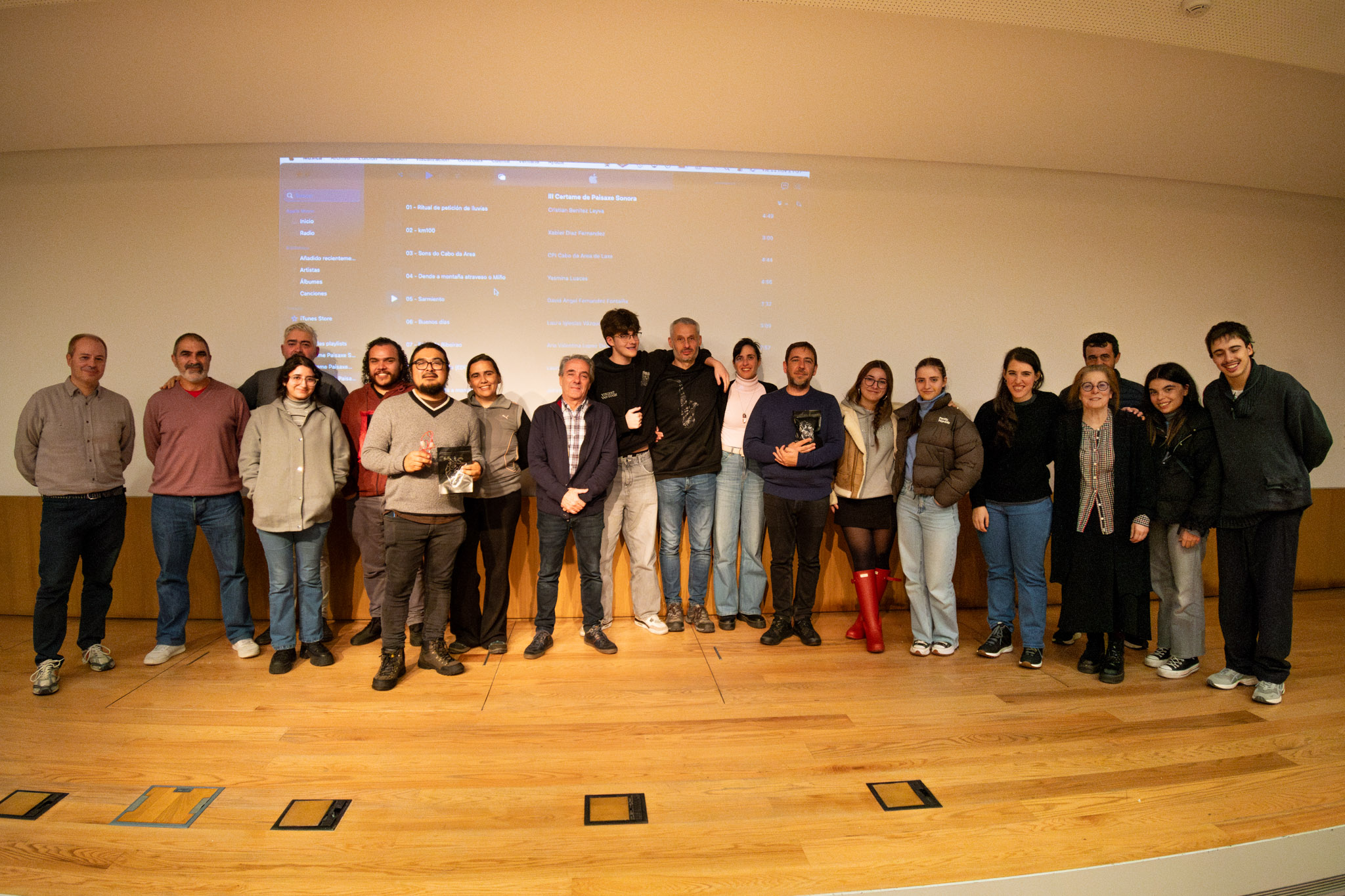 O primeiro premio do certame de Paisaxe Sonora da USC, dotado con 300 euros, recoñeceu o traballo titulado ‘Ritual de petición de lluvias’ de Cristian Benítez Leyva; mentres que o segundo foi para Johan Sebastian Pabón por ‘Montaña a montaña’, quen recibiu 200 euros, ademais do Premio do Público, dotado con 100 euros. Os dous premiados foron distinguidos tamén cunha xoia deseñada por Montse Rego, alén dos correspondentes diplomas. O xurado acordou tamén outorgar unha mención especial a ‘Sons do Cabo da Area’ presentado por estudantes do CPI Cabo de Area.