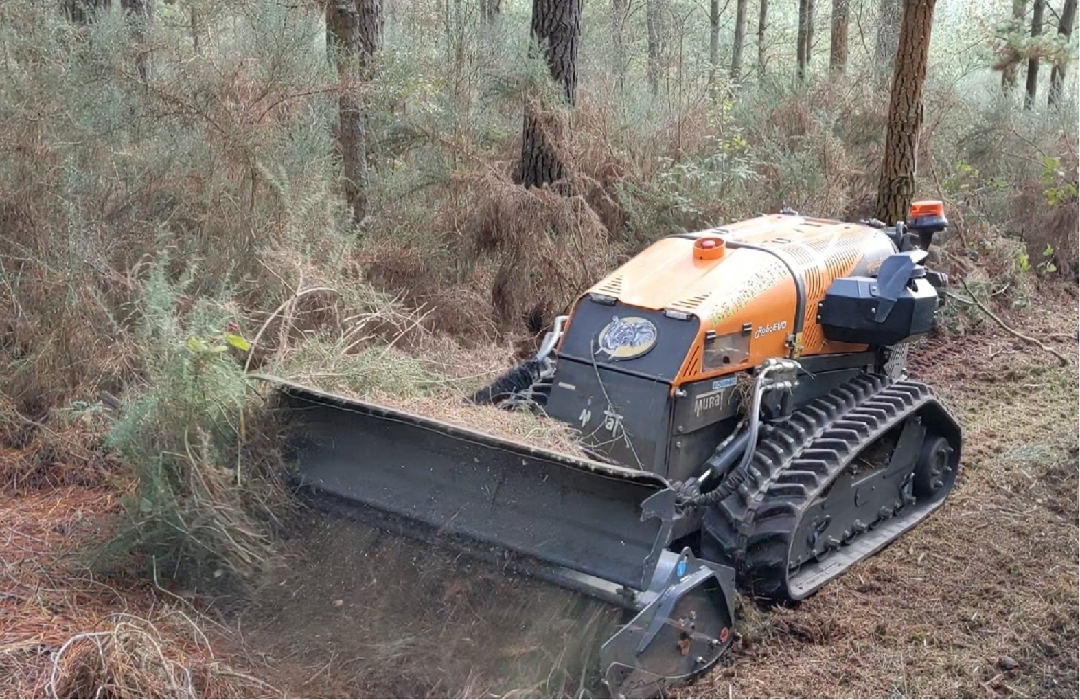 Robot empregado nun piñeiral de Begonte polo grupo operativo Cogomelo+