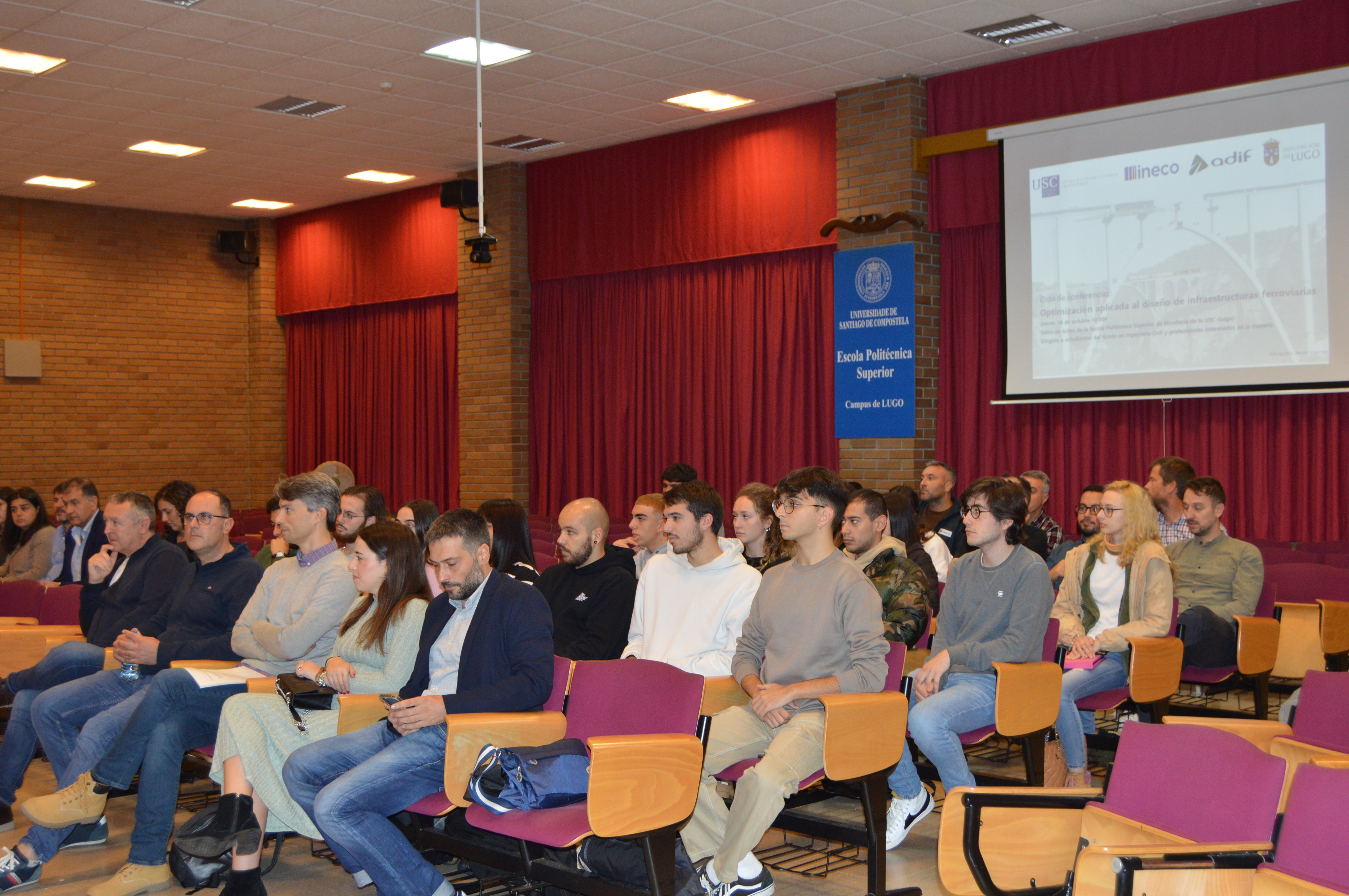A Escola Politécnica Superior de Enxeñaría (EPSE) do Campus Terra da USC reivindica a mobilidade “eficiente e sostible” do tren fronte a outros medios de transporte, segundo manifestou a directora do centro universitario lugués, Rosa Romero, na apertura da xornada ‘Optimización aplicada ao deseño de infraestruturas ferroviarias’, un programa dirixido a estudantes do grao en Enxeñaría Civil e a profesionais do sector, organizado en colaboración con Ineco, ADIF e a Deputación Provincial de Lugo, indicou o profesor da área de Matemática Aplicada da USC, Gerardo Casal.