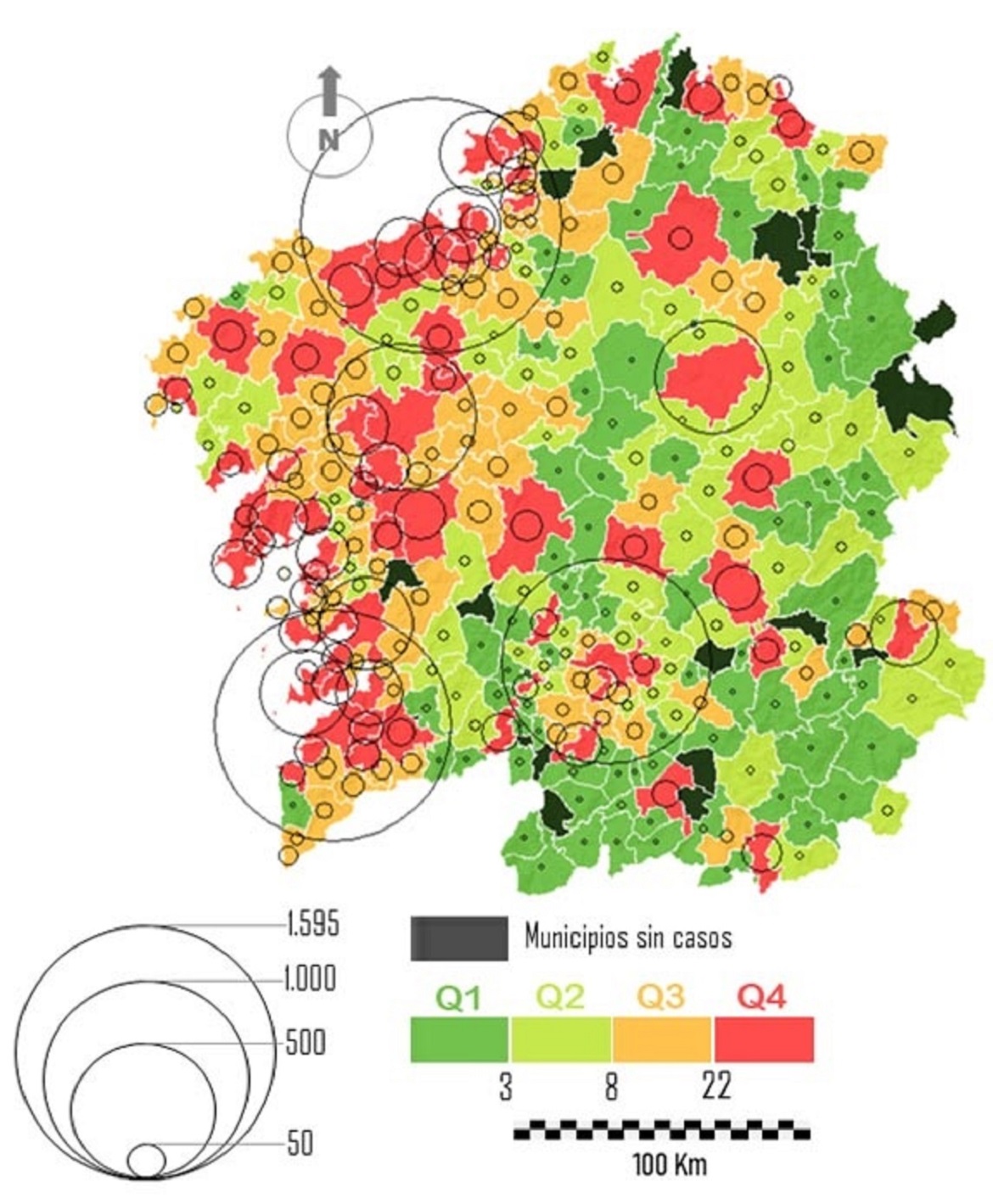 Un equipo integrado na súa maioría por xeógrafos e analistas territoriais, así como por enxeñeiros e economías, traballa dende o inicio da pandemia na xeración dunha cartografía de risco da COVID-19 nos espazos urbanos e rurais de Galicia. Este é outro dos proxectos financiados polo programa de micromecenado da USC ‘Sumo Valor’, concretamente a través da liña que busca apoio para as investigacións de diferentes liñas de coñecemento que contribúan a combater e paliar os efectos da pandemia na sociedade. Empresas e particulares poden apoiar estas investigacións vencelladas ao SARS-CoV-2 mediante microdoazóns por valor non superior aos 3.000 euros, xa sexa unha cantidade monetaria ou un ben. As doazóns poden realizarse a través da páxina web do programa: https://www.usc.gal/gl/micromecenado/proxectos/microdoazons.html. Sumo Valor é un programa da USC que conta co apoio do Consello Social.