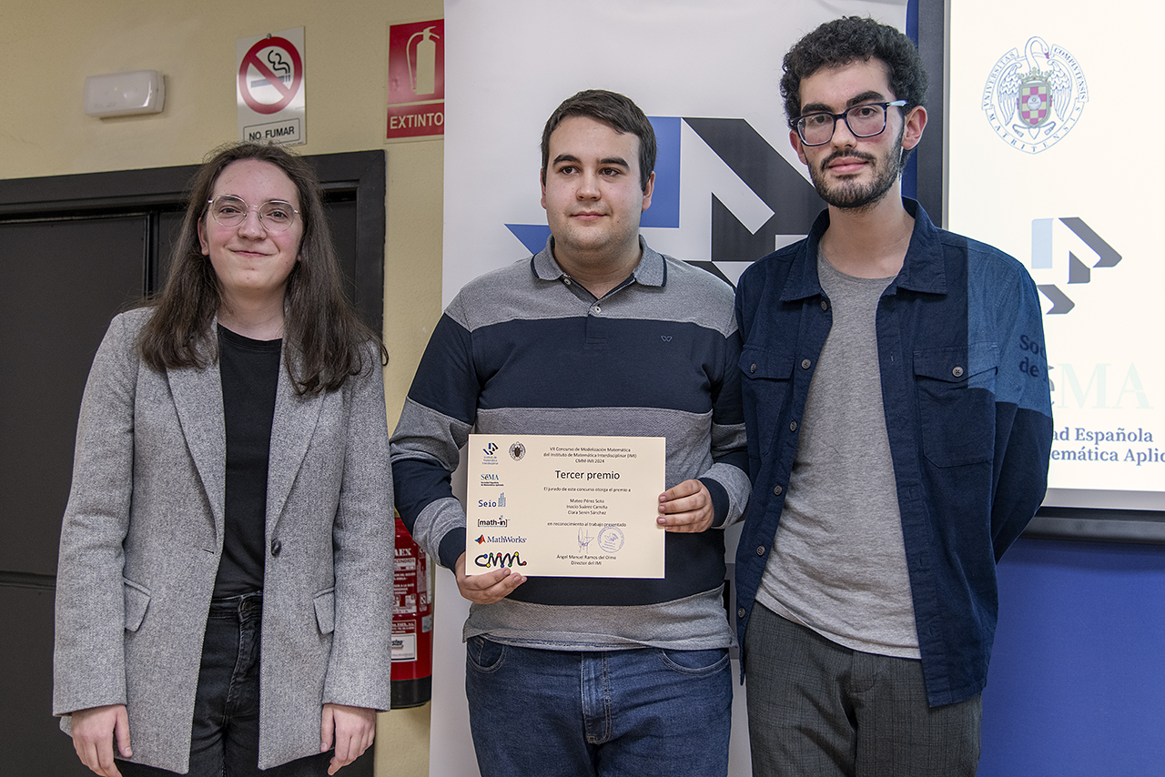 ‘Descubre o segredo do Sol: Deseña a túa propia célula solar’. Este foi o problema formulado no VII Concurso de Modelización Matemática que organiza o Instituto de Matemática Interdisciplinar e que lle valeu o terceiro premio a Mateo Pérez, Inacio Suárez e Clara Senín, estudantes do grao de Matemáticas e do dobre grao Matemáticas e Física. O equipo da USC competiu nesta sétima edición con 30 universidades, oito delas de fóra do Estado.