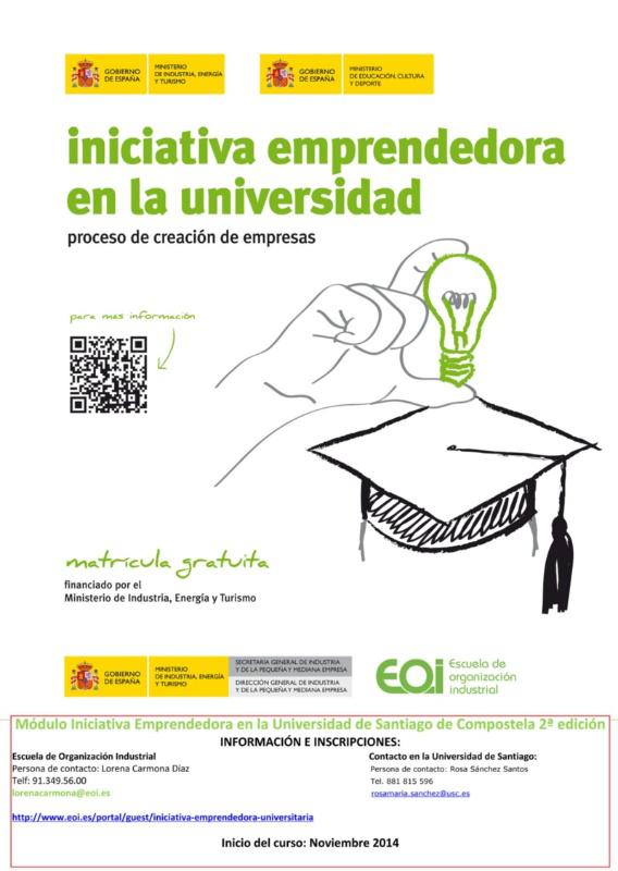 A Área de Valorización, Transferencia e Emprendemento (AVTE) e a incubadora de empresas da USC Uninova colaborarán coa Escola de Negocios EOI no desenvolvemento de dous módulos da acción formativa ‘Iniciativa Emprendedora’ nos campus de Santiago e Lugo os vindeiros meses de novembro e decembro. Estes módulos son unha actividade teórico- práctica de carácter gratuíto dirixida a alumnado de máster, de últimos anos de grao, de posgrao, doutoramento e titulados/as dos últimos anos en paro (por orde de preferencia) e que ademais forma parte da estratexia de alianzas da USC con axentes implicados na promoción do emprendemento. Os módulos inclúen un programa formativo no que se presta atención a cuestións sobre o ecosistema emprendedor, innovación, estratexia, finanzas, marketing, propiedade intelectual e comunicación. Estas cuestións serán impartidas pola Escola de Organización Industrial (EOI), pertencente ao Ministerio de Industria, Enerxía e Turismo, cunha ampla experiencia na posta en marcha de empresas ao ter participado na xestión de varios miles de proxectos de empresas tanto dentro como fóra de España. O proceso formativo consta dunha parte lectiva, de 30 horas de duración, na que se transmiten conceptos imprescindibles para a creación dunha empresa e se reforza con 40 horas de titorización a distribuír entre todos os grupos de traballo. Ao mesmo tempo, crearanse grupos de traballo entre os/as participantes e cada grupo elaborará un plan de negocio partindo dunha idea de empresa. Durante as seis semanas de duración do curso e coa axuda dun titor, elaborarase o plan de negocio. Por último, realizarase unha presentación de cada proxecto ao resto dos alumnos ou posibles inversores como exercicio práctico de comunicación. O curso a celebrar no Campus de Santiago impartirase na aula de formación do Edificio Emprendia, principalmente en horario de tarde, os días 10, 17, 24 e 25 de novembro e os días 1 e 11 de decembro. No campus de Lugo impartirase en novembro e decembro, estando pendente de confirmación o lugar e as datas exactas de celebración.