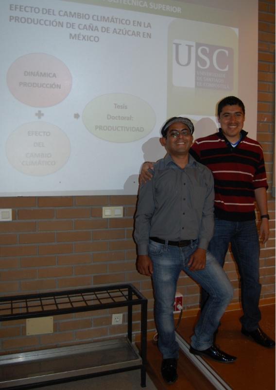 A diminución da produción de caña de azucre, un produto cuxo cultivo é estratéxico en México e que representa o 0,5% do PIB nacional, nas zonas do Golfo de México como posible consecuencia da redución de precipitacións propiciadas por un fenómeno meteorolóxico como é El Niño, centra os estudos que está a desenvolver desde hai nove meses Alberto Santillán. Este investigador mexicano, que analiza na súa investigación datos das precipitacións rexistradas nas localizacións do Golfo de México durante máis de 30 anos, desde 1979 ata 2009, desenvolveu xa unha metodoloxía que permite evidenciar de xeito científico a relación entre a diminución de precipitacións coa caída da produción de cultivos. O estudo de Alberto Santillán céntrase na caña de azucre, un cultivo para o que se cría que as condicións de temperatura e humidade de México eran moi acaídas, pero que, como demostra na súa investigación, non se libra dos efectos negativos derivados do cambio climático e, especialmente asociados a El Niño, un fenómeno que se repite cada 10-12 anos e que se ben amplía o período de choivas, tamén diminúe a cantidade de precipitacións, que, cada vez máis, se concentran en zonas altas e montañosas. Outra das achegas feitas por Alberto Santillán na súa investigación é a referida á incidencia de El Niño no solo. De feito, este investigador salienta que este fenómeno climatolóxico provocou xa na rexión do Golfo de México a diminución do 80% da superficie cañeira cultivada, ademais de repercutir tamén negativamente no volume da súa produción. Un aspecto diferente e que tamén pode relacionarse cos efectos do cambio climático e, sobre todo, co progresivo proceso de desertización de solos, é o que está a estudar Víctor Ruiz, quen, tras recalar na Escola Politécnica hai uns meses, está a avaliar os efectos da erosión hídrica dunha cunca fluvial do Estado de Durango mediante a aplicación de técnicas de Sistemas de Información Xeográfica. Os resultados obtidos ata o momento por Víctor Ruiz, que aproveitou a súa estadía na EPS para recoller novos datos e tamén para proceder ao seu tratamento e estudo, teñen especial interese para esta rexión de México, onde, segundo comentou, os datos de erosión hídrica estiveron sempre subestimados, a pesar da súa repercusión na construción e no posterior funcionamento das infraestruturas hidráulicas. O profesor do Departamento de Edafoloxía e Química Agrícola da USC Agustín Merino, que está a coordinar o traballo desenvolvido por estes investigadores mexicanos, salientou a crecente colaboración que está a manter a USC con outras universidades e centros de investigación de México. Este país, é, segundo indicou o propio Merino, o que mantén na actualidade máis intercambios de docentes, alumnos e investigadores coa USC, un fluxo que tamén é significativo no campus de Lugo, engade.