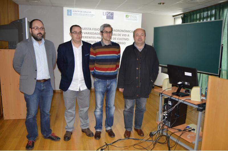 O manexo das cubertas vexetais nas entreliñas dos viñedos presenta a vantaxe de competir cos recursos dispoñibles para a viña, reducindo polo tanto o seu vigor. Asemade, a irregularidade na distribución das precipitacións en Galicia, durante a época estival, pode implicar o requirimento de aportar regas complementarias na viña, evitando acadar niveis de estres nos viñedos que reduzan a súa produción e calidade. Ante e esta situación, o estudo de dúas prácticas culturais no viñedo, tales como o son a rega e as cubertas vexetais, centraron as pescudas desenvolvidas polo licenciado en Enoloxía Emiliano Trigo no marco da tese de doutoramento que vén de presentar na Escola Politécnica Superior do Campus Terra da USC baixo o título ‘Resposta fisiolóxica e agronómica de variedades galegas de vide a diferentes prácticas de cultivo: cubertas vexetais e rega’. Nesta investigación de doutoramento, dirixida por José M. Mirás, Ignacio Orriols e polo tamén doutor e profesor do Departamento de Enxeñaría Agroforestal da USC na Escola Politécnica Superior do Campus Terra, Javier José Cancela, o enólogo xienense Emiliano Trigo Córdoba desenvolveu ensaios de rega en parcela para as castes Albariño, Godello e Treixadura nas denominacións de orixe Rías Baixas, Ribeiro e Valdeorras, ademais de facer un ensaio de diversas cubertas vexetais sobre a caste Mencía na DO Ribeiro. Nestes ensaios, o autor da investigación avaliou os efectos fisiolóxicos, agronómicos e cualitativos dos diferentes tratamentos durante tres campañas, as correspondentes aos anos 2012, 2013 e 2014. As conclusións recollidas nesta tese, que acadou a mención internacional, sinalan que a rega en Galicia non supuxo melloras produtivas nin cualitativas fronte ao sequeiro, agás na Treixadura nun dos tres anos de estudo. Daquela, conclúese que é preciso realizar novos ensaios con diferentes doses de rega e diferentes períodos de aplicación durante o ciclo vexetativo do viñedo. No canto das cubertas vexetais, estas produciron unha redución da expresión vexetativa da videira, sen afectar á produción, pero si reducindo o tamaño da baia, o que amosa unha mellor aptitude para a obtención de viños de calidade da caste Mencía, segundo apunta Emiliano Trigo. Tribunal de tese e cualificación O tribunal encargado de avaliar a tese de doutoramento ‘Resposta fisiolóxica e agronómica de variedades galegas de vide a diferentes prácticas de cultivo: cubertas vexetais e rega’ estivo formado por Luis S. Pereira, da Universidade de Lisboa; Jorge Pérez, do Intituto Nacional de Tecnoloxía Agropecuaria de Arxentina; Emilio Nicolás, do CEBAS-CSIC de Murcia, Enrique García-Escudero, do ICVV- Universidade da Rioxa, e o profesor da USC Xesús Pablo González, quen actuou en calidade de secretario. Os membros da comisión responsable de cualificar a investigación de doutoramento desenvolvida na USC por Emiliano Trigo Córdoba acordaron conceder por unanimidade a máxima cualificación de sobresaínte cum laude.