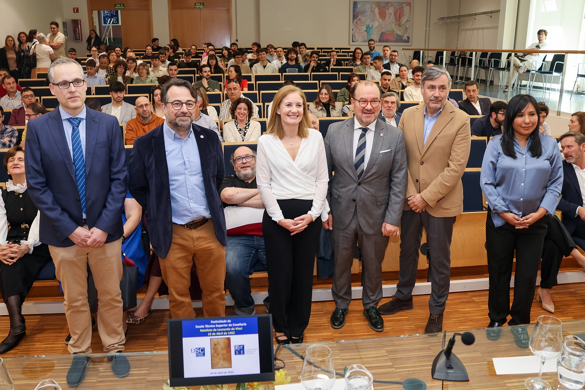 A Escola Técnica Superior de Enxeñaría celebrou este xoves a festividade do seu patrón Leonardo da Vinci lembrando tanto o crecemento do centro nos últimos anos como a súa forte vinculación co mundo empresarial. Así o puxo de manifesto a súa directora, Julia González, no propio acto, que inaugurou o reitor Antonio López, e no que a secretaria do centro, Nelly Condori Fernández, presentou o informe da memoria de actividades da Escola no curso pasado.
