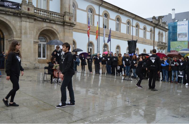 O Espazo de Danza da USC sumouse este mércores á iniciativa ‘Lugo en Negro’, unha proposta contra a violencia de xénero promovida pola Fundación TIC, coa representación dunha coreografía na luguesa Praza de San Marcos, no marco dun acto público previo ao comezo da marcha ‘En camiño contra a violencia’, un xesto colectivo de apoio ás vítimas deste tipo de violencia.