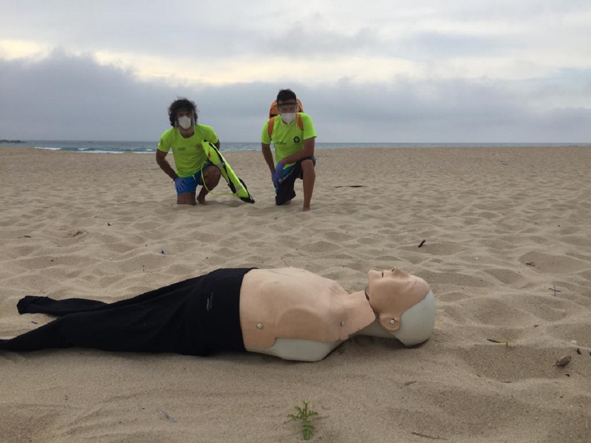 Concretamente, a proposta deste grupo de expertos pasa en primeiro termo por realizar unha “valoración da respiración á distancia, sen achegarse á cara da vítima e situados a barlovento desta”, para logo, trala colocación dos EPI, realizar cinco ventilacións de rescate empregando un balón resucitador cun filtro antiviral HEPA, antes de comezar coas compresións. A manobra, explican, debe ser realizada por dous socorristas e nela “é de vital importancia a fixación correcta da máscara” para evitar un maior risco de contaxio, o que leva aos investigadores a pór o acento na necesidade de que as e os profesionais poidan adestrarse previamente no seu manexo. “O cambio fundamental”, engaden, atópase “na posición dos reanimadores, a barlovento da vítima, pois na praia o vento é un factor que hai que ter en conta no referido á diseminación das pingas e aerosoles, e no inicio do protocolo con ventilacións tras vestir o EPI para combater a hipoxia”.
