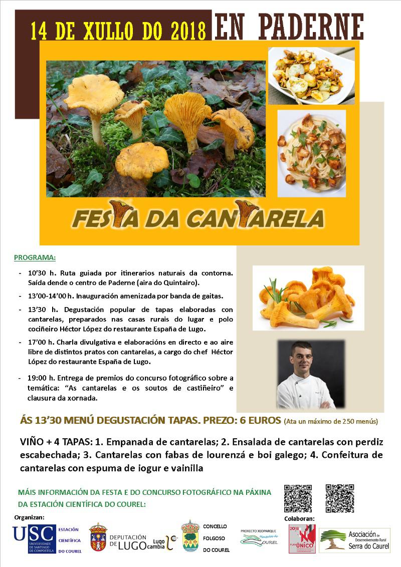 A xornada, organizada pola USC en colaboración doa Deputación Provincial de Lugo, Concello de Folgoso do Courel e a Asociación de Desenvolvemento Rural Serra do Courel, comezará pola mañá cunha ruta guiada polos itinerarios naturais da contorna. Unha vez rematada a camiñada, a actuación dunha banda de gaitas será o preludio da sesión inaugural da festa, un acto previsto para las 13.00 horas e no que se agarda a participación do director da Estación Científica do Courel, Antonio Rigueiro, e doutros investigadores da USC ligados ao centro, así como da vicerreitora de Coordinación do campus de Lugo, Montserrat Valcárcel. A Alcaldesa de Folgoso do Courel, Dolores Castro, e representantes políticos da Deputación Provincial de Lugo, tamén participarán nesta sesión. De seguido, os asistentes poderán degustar tapas elaboradas con cantarelas a prezo económico preparadas por casas rurais do lugar e polo cociñeiro Héctor López.
