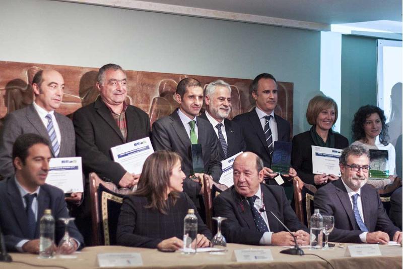 De pé, cuarto pola esquerda, o director da Estación Fernando Cobo recolleu o galardón en nome da USC