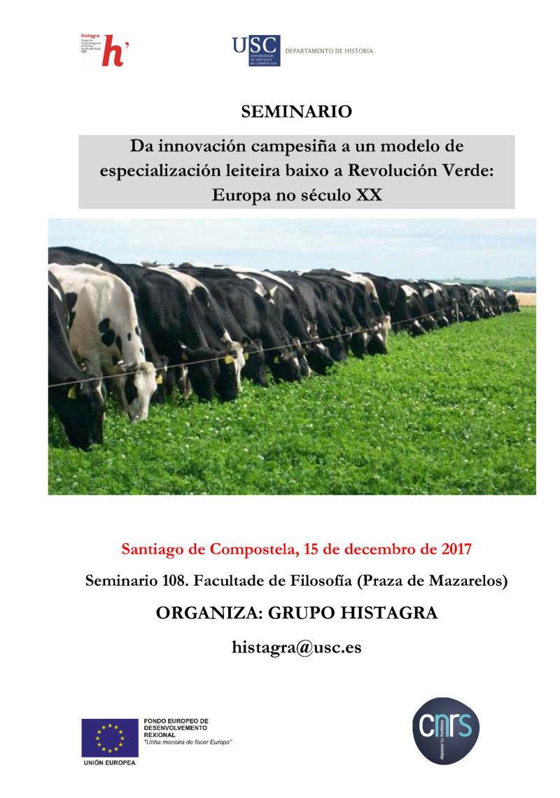 O grupo Histagra, en colaboración co CNRS, desenvolve este venres 15 na Facultade de Filosofía o seminario ‘Da innovación campesiña a un modelo de especialización leiteira baixo a Revolución Verde: Europa no século XX’. O encontro dará comezo no seminario 108 ás 9:00 horas cunha presentación a cargo dos coordinadores, Lourenzo Fernández Prieto e Daniel Lanero Táboas.