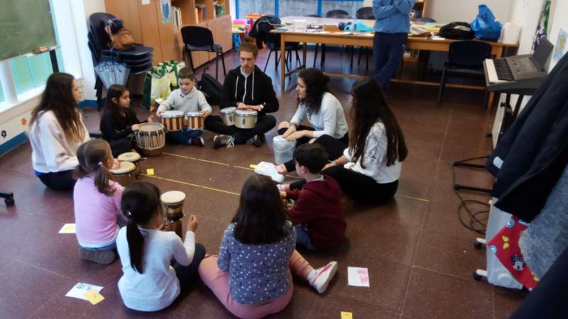 Alumnado de terceiro curso do grao en Mestre/a en Educación Primaria comezou esta semana a impartir obradoiros musicais en locais socioculturais do rural galego arredor da cidade de Santiago a modo de proxecto de Aprendizaxe-Servizo (ApS). Esta é a cuarta edición dunha iniciativa que se desenvolve dentro do proxecto ‘Recuperando as tradicións a través da música e da arte’ e que se desenvolve no Local Socio Cultural de Bando.