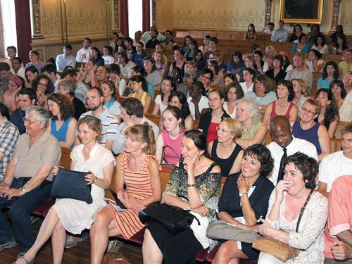 Ao Paraninfo universitario acudiron un total de 250 alumnos estranxeiros, os que participan nos Cursos de lingua e cultura e os seus coordinadores, procedentes de once universidades e centros de estudos de Estados Unidos, Canadá, Italia e Brasil; así como os que viaxaron pola súa conta dende os cinco continentes para facer estes cursos de verán na USC e que proceden de Portugal, Xapón, Polonia, Canada, Reino Unido, Brasil, Italia, Estados Unidos, Bélxica, Alemaña, Corea, Francia, Suíza, India, Romanía, Arabia Saudí, Indonesia, Noruega, Holanda, Austria , Grecia, Rusia, Malasia e Mozambique.