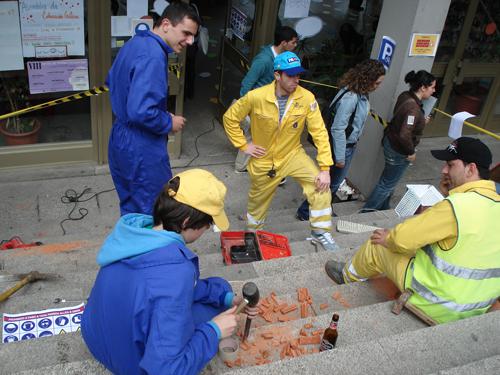 Estudantes da materia de Didáctica da Educación Visual e Plástica da titulación en Mestre especialidade en Educación Primaria da Facultade de Ciencias da Educación están a desenvolver ao longo do presente mes de maio unha serie de propostas artísticas coas que se pretende involucrar aos mestres en formación para que definan os problemas que existen nos centros educativos por medio da educación artística.