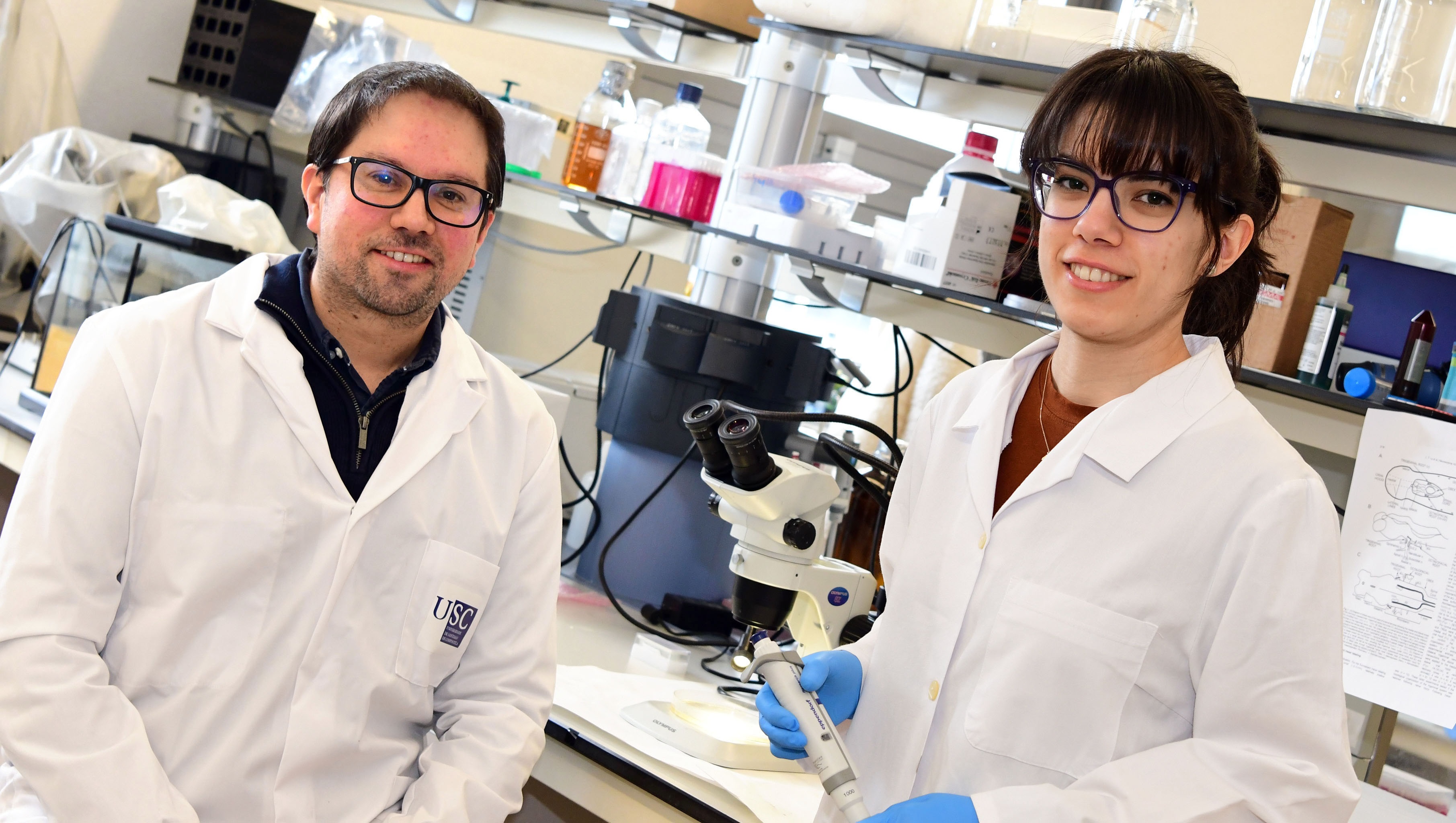 Antón Barreiro e Laura González Llera no seu laboratorio da USC. FOTO: Santi Alvite