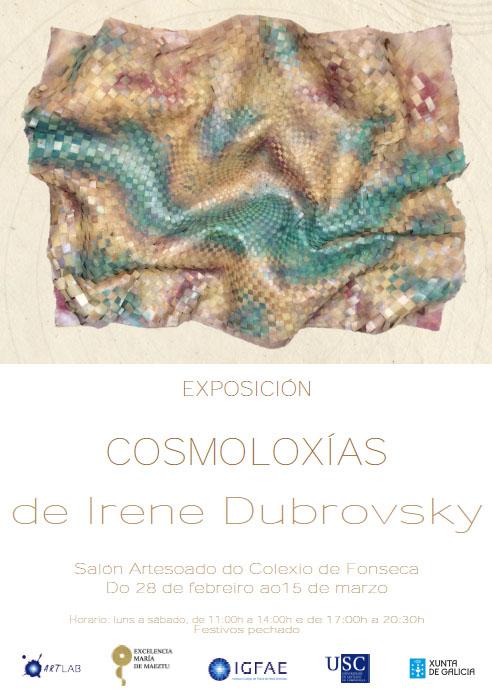 A obra da artista plástica Irene Dubrovsky protagoniza a primeira actividade de ArtLAB, unha nova iniciativa interdisciplinar do Instituto Galego de Física de Altas Enerxías (IGFAE) cuxo obxectivo é unir arte e ciencia, indagar nas súas interseccións e tender pontes entre ambas, achegando a ciencia á sociedade desde un punto de vista diferente. A exposición ‘Cosmoloxías’ inaugúrase este xoves 28 ás 20.00 horas no Colexio de Fonseca nun acto no que intervirá o vicerreitor de Investigación e Innovación, Vicente Pérez Muñuzuri.
