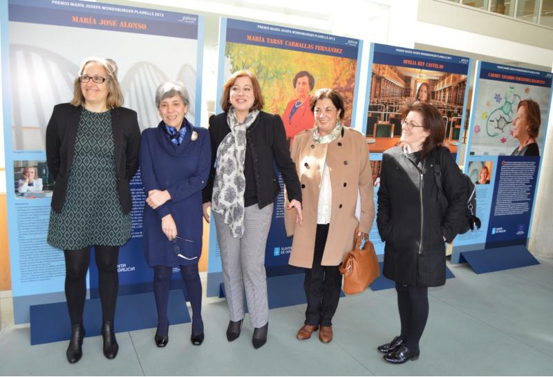 A vicerreitora de Servizos Universitarios do campus de Lugo, Carme Silva Domínguez; a secretaria Xeral de Igualdade, Susana López Abella, e a subdirectora xeral de Igualdade, Pilar García-Rodeja, inauguraron este xoves no campus de Lugo esta mostra, de carácter itinerante e que chega ao campus de Lugo procedente da Universidade da Coruña. Despois do 7 de abril, esta exposición viaxará ao campus de Ferrol para logo permanecer exposta no compostelán Colexio de Fonseca, onde rematará, na segunda metade de xuño, o seu periplo polas tres universidades galegas. Estruturada en once paneis de gran tamaño, a exposición ‘Premios María Josefa Wonenburger Planells. Unidade de Muller e Ciencia’ ofrece ao visitante información biográfica e tamén da súa traxectoria profesional sobre as diferentes mulleres que foron distinguidas cos premios María Josefa Wonenburger Planells desde a creación deste galardón en 2007. O Premio María Wonenburger recoñeceu na súa primeira edición a Inmaculada Paz Andrade, referente en Microcalorimetría, para logo, en anos posteriores distinguir o traballo doutras nove mulleres, entre as que figuran María Teresa Miras Portugal, María Soengas González, Carmen Navarro Fernández-Balbuena, Ofelia Rey Castelao, María Tarsy Carballas, María José Alonso, Carmen García Mateo e Isabel Aguirre.
