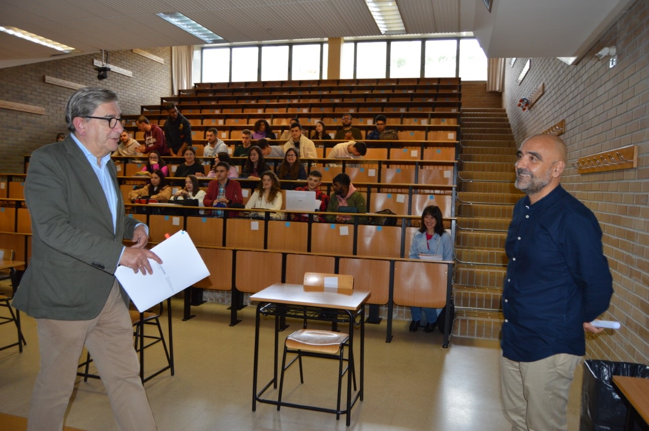Salustiano Velo e Roberto Bande, na sesión con estudantado do grao en ADE