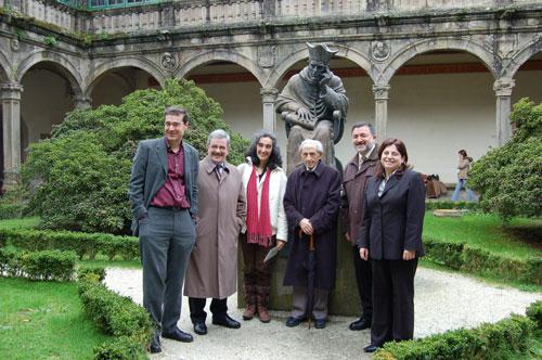 O equipo decanal da Facultade de Ciencias da Educación xunto con Isaac Díaz Pardo no Colexio de Fonseca