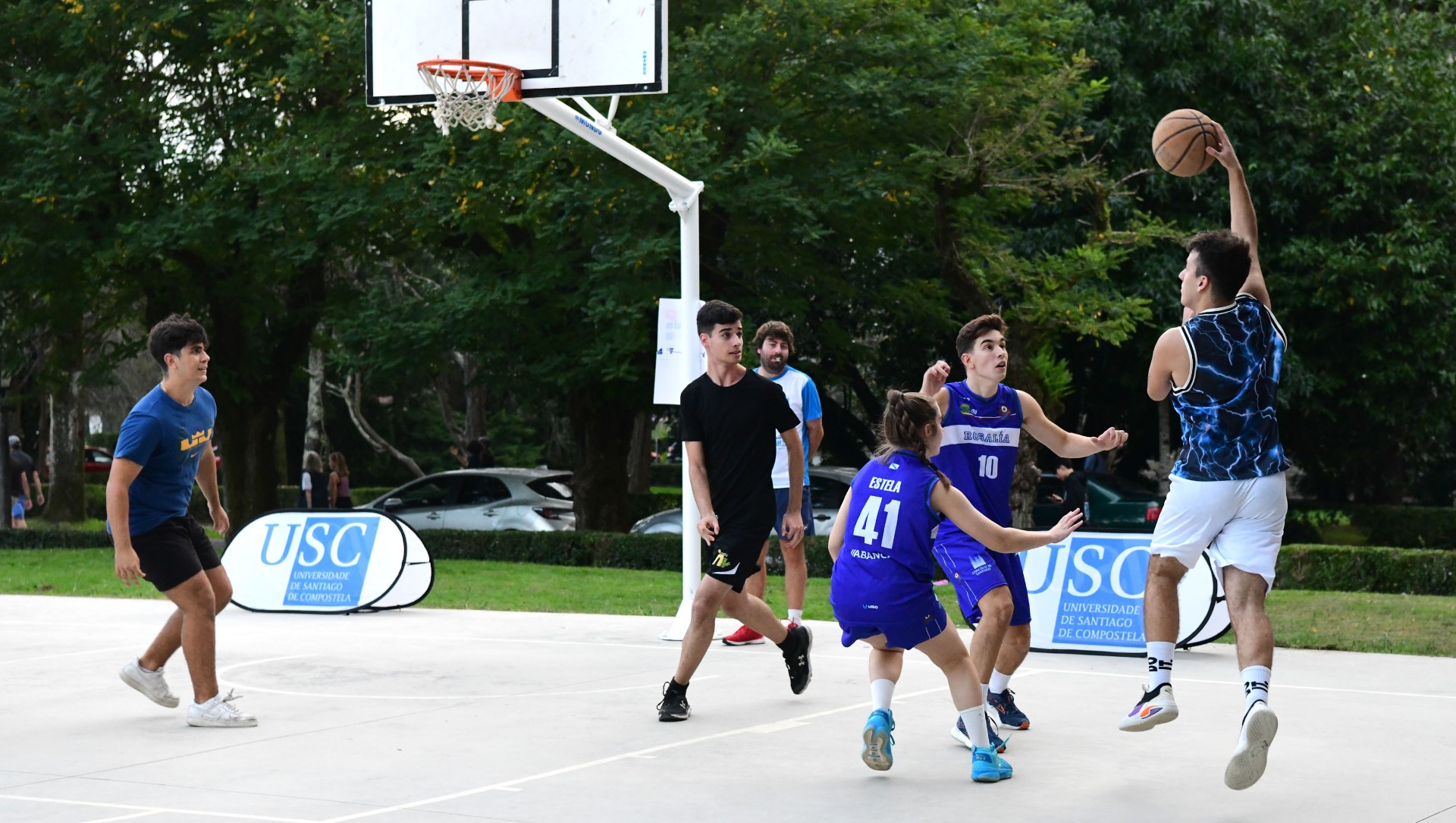 Partido de baloncesto ao aire libre. Foto: Santi Alvite