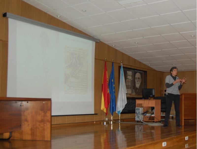 A Facultade de Ciencias do Campus de Lugo foi a sede elixida para celebración do acto 'De Leonardo a nós', enmarcado nas actividades que se están a desenvolver nos campus de Santiago e Lugo con motivo da celebración do III Día da Ciencia en Galego. Segundo os seus organizadores, con este encontro "preténdese destacar, por medio de presentacións breves, o labor técnico e científico de Leonardo da Vinci e a súa influencia na ciencia moderna e contemporánea". A actividade estruturouse a partir dunha serie de comunicacións centradas no labor científico do xenio italiano: 'L eonardo: a representación gráfica das súas ideas' (Francisco Javier López, EPS), ' A anatomía de Leonardo e a actual: similares pero diferentes' (Matilde Lombardero, Veterinaria), ' Da Vinci: sobre luares cincentos e planetas afortunados' (Manuel Andrade, EPS); ' De como os autómatas de Leonardo da Vinci evolucionaron ata converterse en valiosos compañeiros robóticos' (Roberto Iglesias, Ciencias); 'Leonardo enxeñeiro: os seus deseños hidráulicos' (Montserrat Valcárcel, EPS). Arredor de 200 persoas (a maioría deles alumnos de secundaria de varios institutos da provincia de Lugo) asistiron ao encontro, no que tamén se levou a cabo a entrega dos Premios á calidade lingüística dos traballos académicos e de investigación convocados polas facultades de Ciencias e de Formación do Profesorado e pola Escola Politécnica Superior. Outras actividades en Lugo As actividades no Campus de Lugo, organizadas conxuntamente pola Escola Politécnica Superior e as Facultades de Veterinaria e Ciencias, completáronse con visitas guiadas a laboratorios de investigación de varios centros do campus: os tres centros organizadoras e o hospital Rof Codina. Ademais, na Biblioteca Intercentros do Campus permanece exposta a mostra biobibliográfica Os nosos Leonardos, sobre os inventores galegos Ramón Verea, Ángela Ruiz Robles e Alexandre de Fisterra; e a Facultade de Ciencias acolle unha mostra conmemorativa do bicentenario do nacemento de Antonio Casares da que é responsable a profesora deste centro Isabel Fernández. Ambas as exposicións poderán visitarse ata o próximo martes, día 13. Un dos relatorios da xornada, a cargo de Matilde Lombardero, da Facultade de Veterinaria
