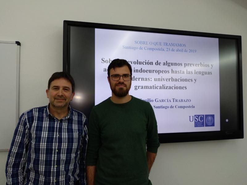García Trabazo ofreceu súa intervención unha charla sobre gramática baixo o título ‘Sobre a evolución dalgúns proverbios e adverbios indoeuropeos ata as linguas modernas: univerbacións e gramaticalizacións’. De seguido, Tamaredo Meira presentou a charla sobre variación lingüística ‘ Heteroxeneidade gramatical e omisión de pronomes: Diferencias probabilísticas entre variedades do inglés’.