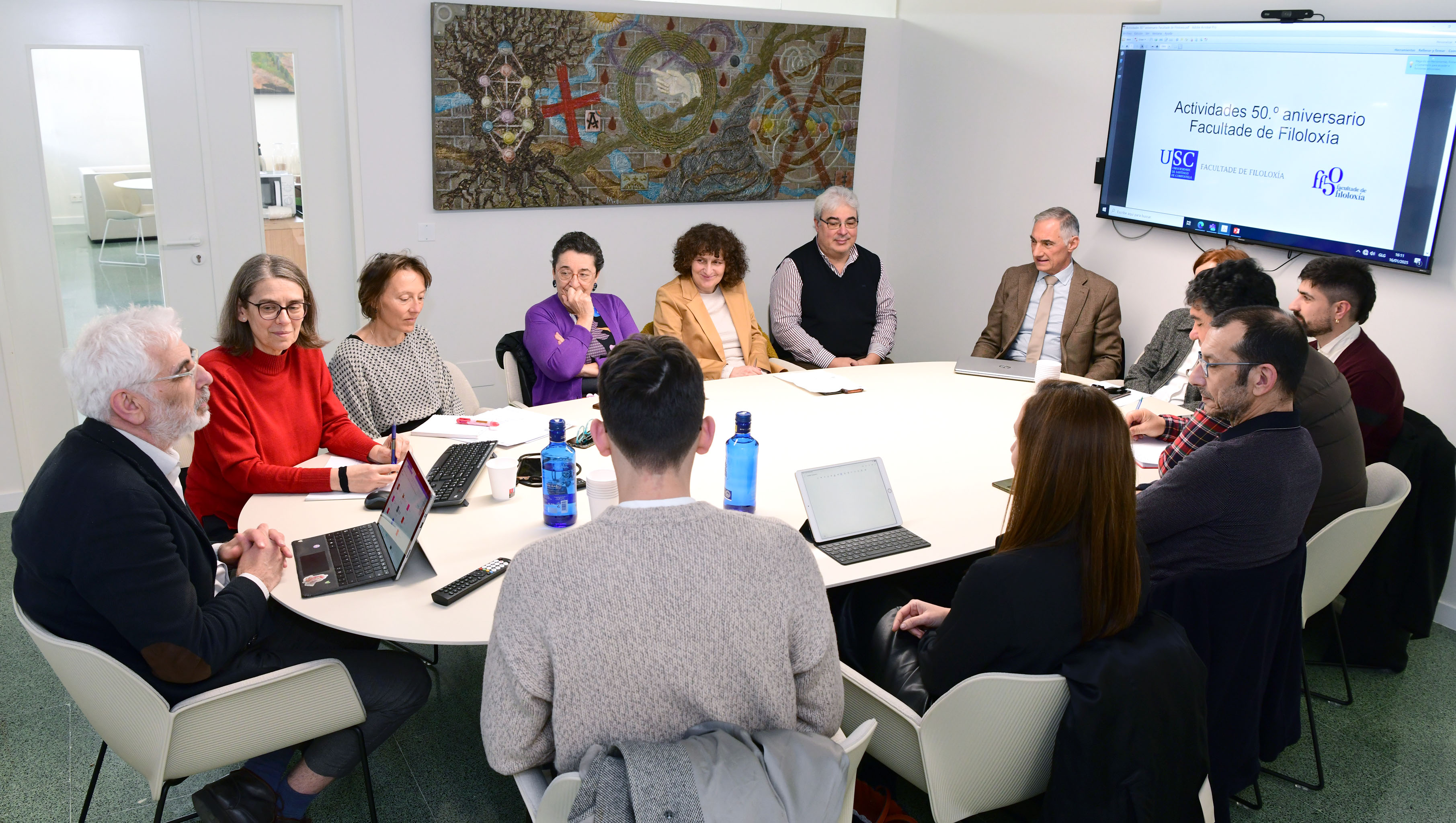 O equipo decanal da Facultade de Filoloxía reuniu esta semana o seu comité consultivo para tratar diversas cuestións académicas e organizativas ademais de informar das previsións programáticas da celebración do 50 aniversario da creación do centro, que inclúen concertos, un libro conmemorativo e encontros con protagonistas actuais da cultura galega.