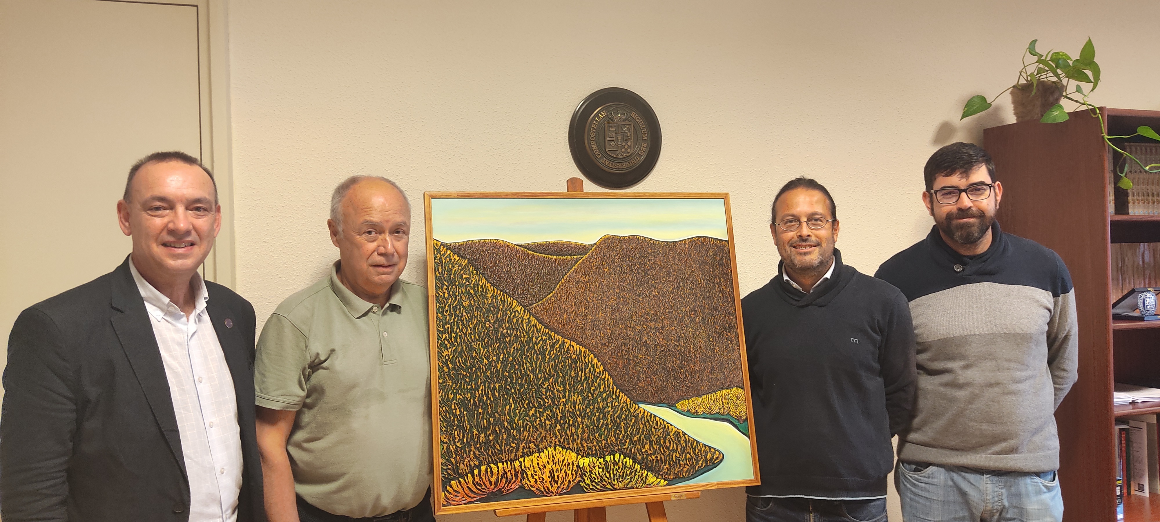 O cadro do profesor Luis Rodríguez Camarero leva por título ‘Curva da Cova’ e trátase dun óleo sobre táboa, de 77 x 82 centímetros. En canto ao do profesor Nel Rodríguez Rial, titúlase ‘Physis I’” e tamén é un óleo, neste caso sobre lenzo, de 92,5 x 146,5 centímetros. No acto de entrega, os autores estiveron acompañados do decano Marcelino Agís Villaverde; do vicedecano Javier Barcia González e do secretario da Facultade Martín Pereira Fariña. O equipo directivo quixo deixar constancia da súa gratitude por esta “xenerosa entrega que contribúe a humanizar e embelecer un espazo do noso centro moi utilizado”.