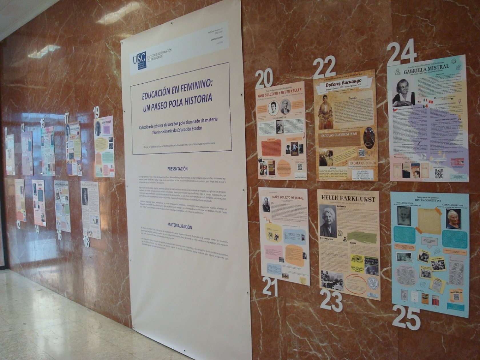 A Facultade de Formación do Profesorado do Campus de Lugo da USC rescata o labor desenvolvido por mulleres e colectivos femininos a prol da educación ao longo da historia a través dunha mostra composta por 34 pósteres e paneis, nos que o alumnado da materia Teoría e Historia da Educación Escolar impartida polo profesor Francisco Xosé Candia Durán recuperan a memoria de episodios singulares da historia da educación e salientan as importantes achegas realizadas por ducias de educadoras e/ou colectivos femininos ao longo dos séculos.