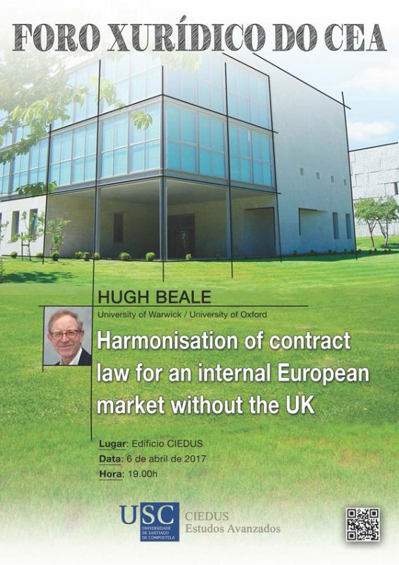 Hugh Beale, profesor das Universidades de Warwick e Oxford e autor de numerosas obras de referencia sobre Dereito de contratos, é un dos máximos especialistas no lento e complicado proceso de harmonización do Dereito contractual en Europa, sector de máxima importancia para o correcto funcionamento do mercado interior e para a defensa da parte contractual máis débil, singularmente os consumidores e as pequenas e medianas empresas.