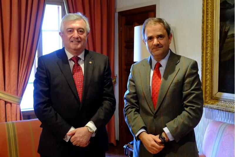 Juan Viaño e Íñigo Sáenz de Miera mantiveron un encontro antes do inicio da xuntanza cos investigadores. Foto: Servimav-USC
