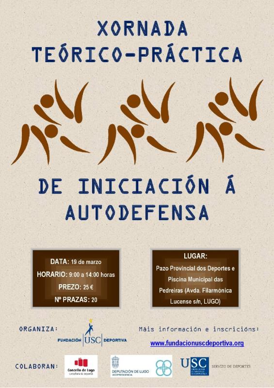 A Fundación USC Deportiva e o Servizo de deportes da USC organizan unha xornada teórica e práctica de iniciación á autodefensa no campus de Lugo. Esta actividade formativa, aberta á participación de todas as persoas maiores de 16 anos interesadas en iniciarse nesta disciplina desenvolverase o 19 de marzo, en quenda de mañá, e será impartida polo técnico deportivo en Karate Óscar Lafuente López e por Sergio Lafuente López, quen tamén conta con ampla experiencia na autodefensa e en deportes de loita.