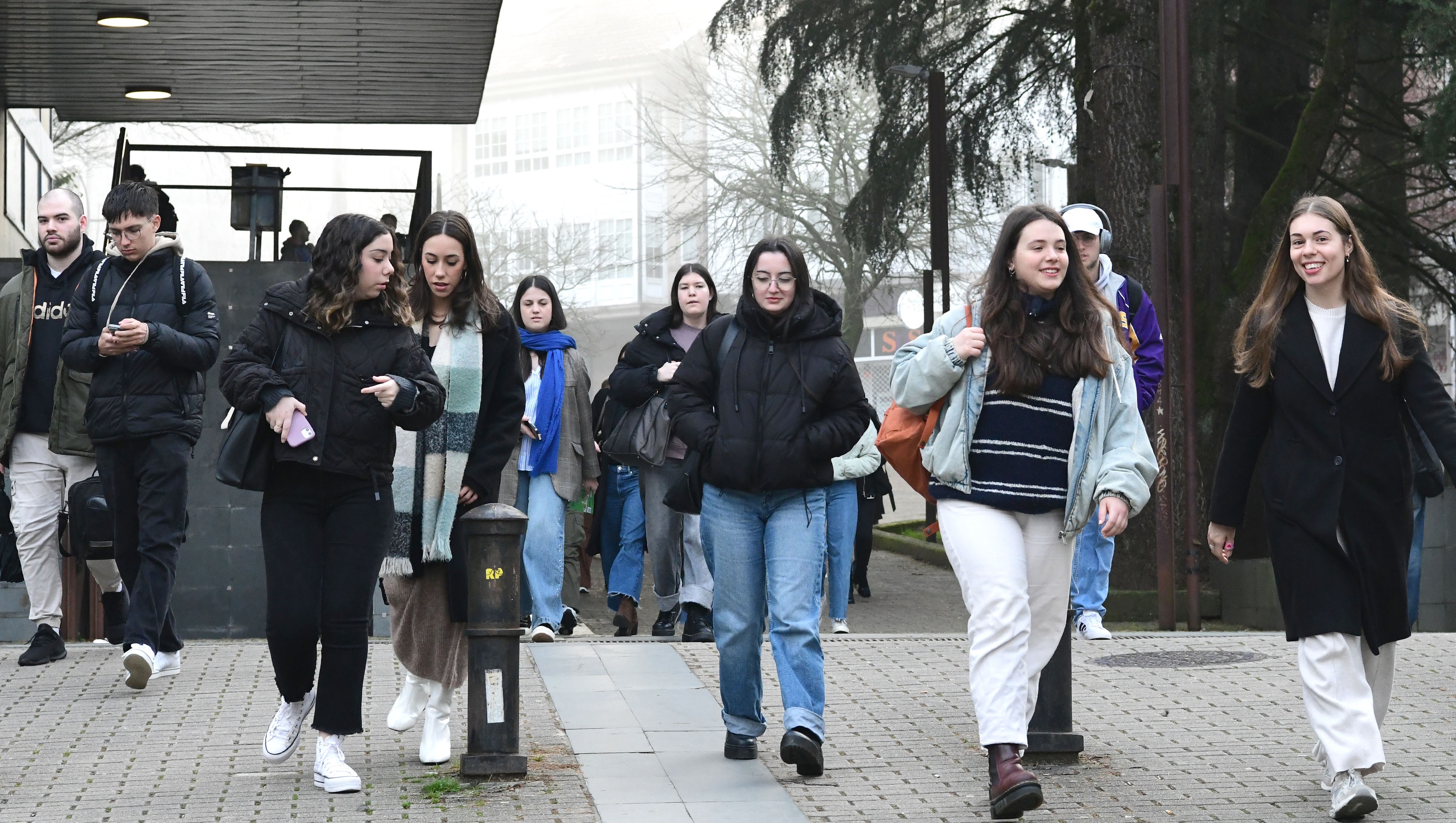 Estudantado diante da Biblioteca Concepción Arenal. FOTO: Santi Alvite