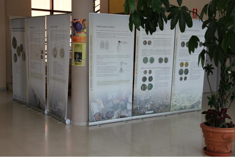 A Facultade de Humanidades do campus de Lugo da USC acolle nas súas instalacións ata finais de abril unha exposición sobre a colección numismática do Museo do Castro de Viladonga cedida polo propio Museo do Castro de Viladonga. Esta mostra, que se desenvolve baixo o título ‘A moeda romana como documento’, ofrece cumprida información sobre a colección de moedas acubilladas no Museo do Castro de Viladonga, elementos documentais que abranguen un amplo período cronolóxico que vai desde o século I antes de Cristo ata o século IV despois de Cristo. Os diversos paneis da mostra instalados na entrada da Facultade de Humanidades replican imaxes e aportan datos de moedas da etapa republicana e do alto imperio, tales como o son os denarios de prata, ases de Augusto e Tiberio, ases de bronce ou sestercios de bronce. As novas moedas acuñadas na etapa coñecida como Baixo Imperio, o período comprendido entre mediados do século III e do século V e que son as máis e mellor representadas no Museo do Castro de Viladonga, tamén ocupan un espazo destacado nesta mostra, que dá conta da importancia que teñen na colección numismática do Museo do Castro de Viladonga moedas como os Antonianos ou argenteus, folles, áureo ou sólidus, semisses... A exposición aberta este mes na Facultade de Humanidades sobre a colección numismática do Castro de Viladonga reproduce imaxes das distintas moedas de curso oficial durante as distintas etapas do imperio romano. Asemade, a mostra ofrece información detallada sobre algúns dos cambios monetarios producidos durante este período histórico.