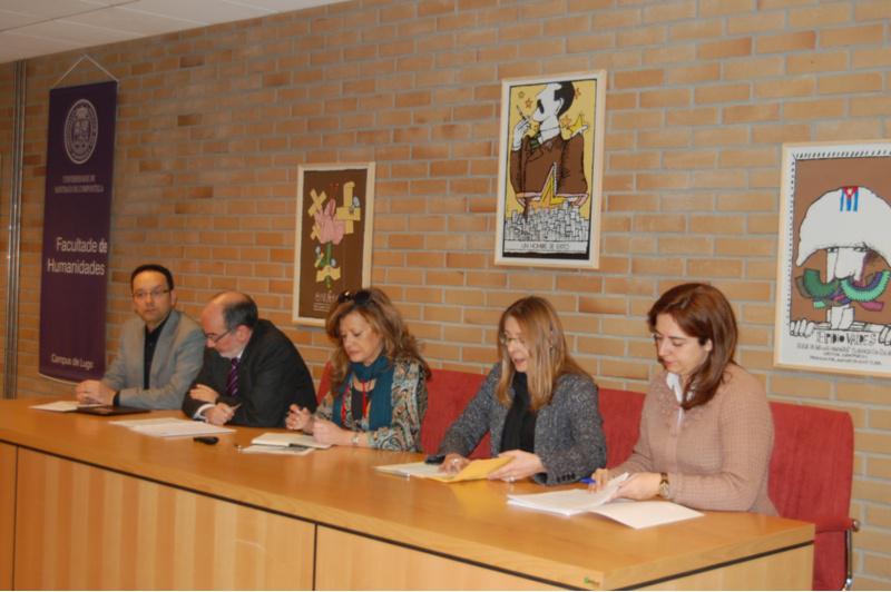 A Facultade de Humanidades de Lugo celebrou a súa primeira Xornada en Xestión e Mediación Cultural, un novo foro para o debate sobre a situación do eido cultural como xerador de emprego, e para aproximar este sector ao ámbito universitario, especialmente ao recentemente creado Grao en Ciencias da Cultura e Difusión Cultural. A programación do encontro ía dirixida especialmente aos alumnos que rematan este ano os seus estudos de Bacharelato, como xeito de achegarlles unha alternativa de interese á hora de decidir a súa futura carreira. Tamén os alumnos de Formación Profesional (de cara a unha posible continuación de estudos), os universitarios xa titulados ou nos últimos anos de formación (para a ampliación das súas expectativas laborais) e os alumnos do Cuarto Ciclo universitario forman parte dos colectivos aos que a xornada vai especialmente dirixida. No acto de apertura do encontro interviñeron a vicexerenta do Campus de Lugo, Carmen Varela, e a decana da Facultade de Humanidades, Mª Isabel González. González explicou que estas xornadas “ nacen co obxectivo de crear pontes entre o sector cultural e os nosos estudantes, para animalos no seu labor formativo ao comprobaren que é posible vivir da cultura, entendida esta no seu sentido máis amplo”. A parte central das xornadas estivo constituída por dúas mesas redondas. A primeira delas, centrada no ámbito da xestión cultural, contou coa presenza, entre outros, do vicerreitor de Estudantes, Cultura e Formación Continua, Francisco Durán Villa. A mediación cultural protagonizou o segundo dos debates, no que participaron os responsables de diversos centros e entidades do panorama cultural de Lugo e a súa provincia. A xornada pechouse con senllos relatorios a cargo do fotógrafo Eduardo Ochoa e do cineasta Manuel Curiel.